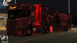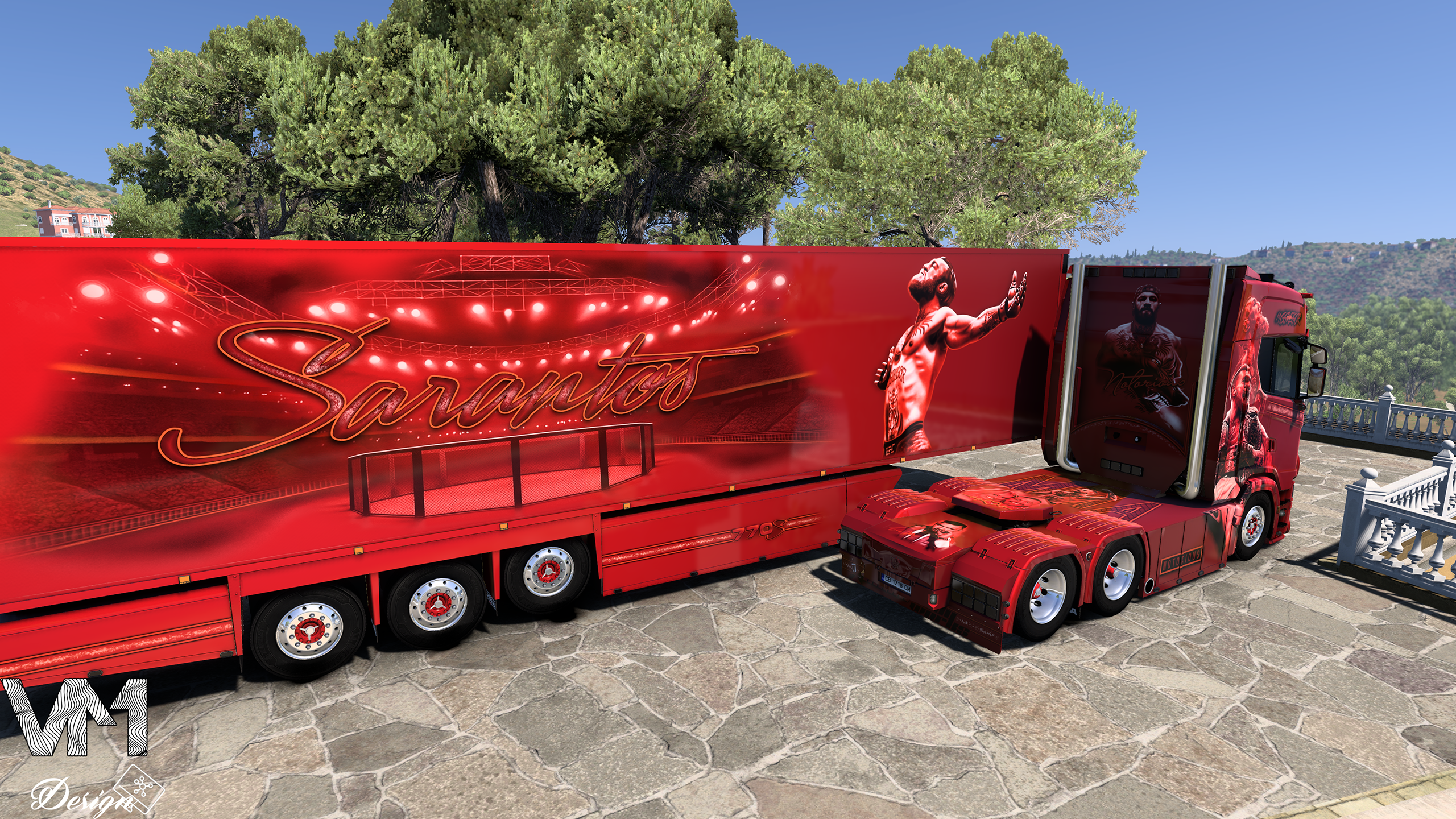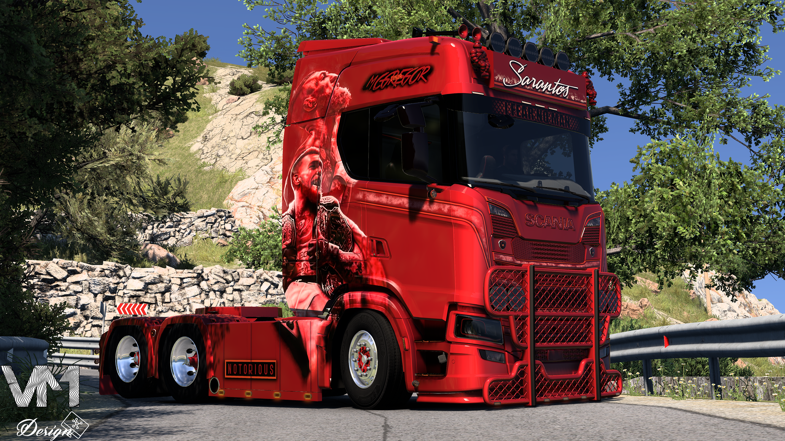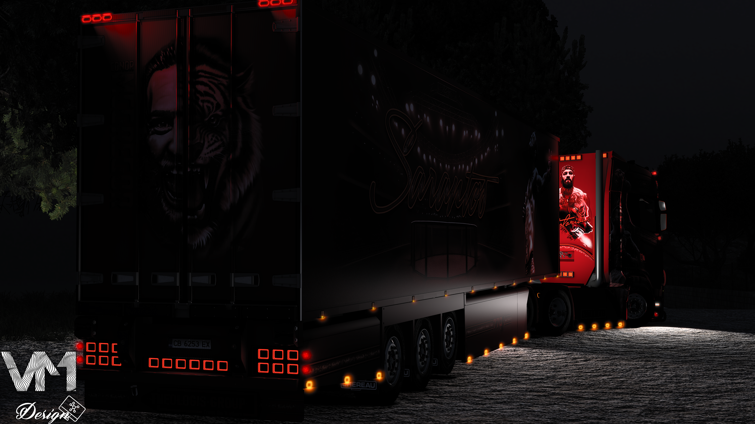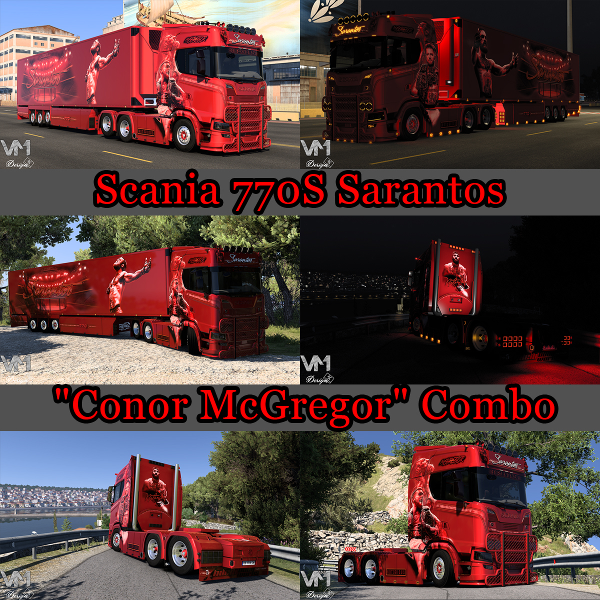 This is a complete Truck and Trailer combo of the Scania “Conor McGregor” by Sarantos. This project was made from scratch, all the details, lighting accessories were made to match the real truck as best as possible. We tried to represent the real Conor McGregor Combo to almost the 100% of it’s details.