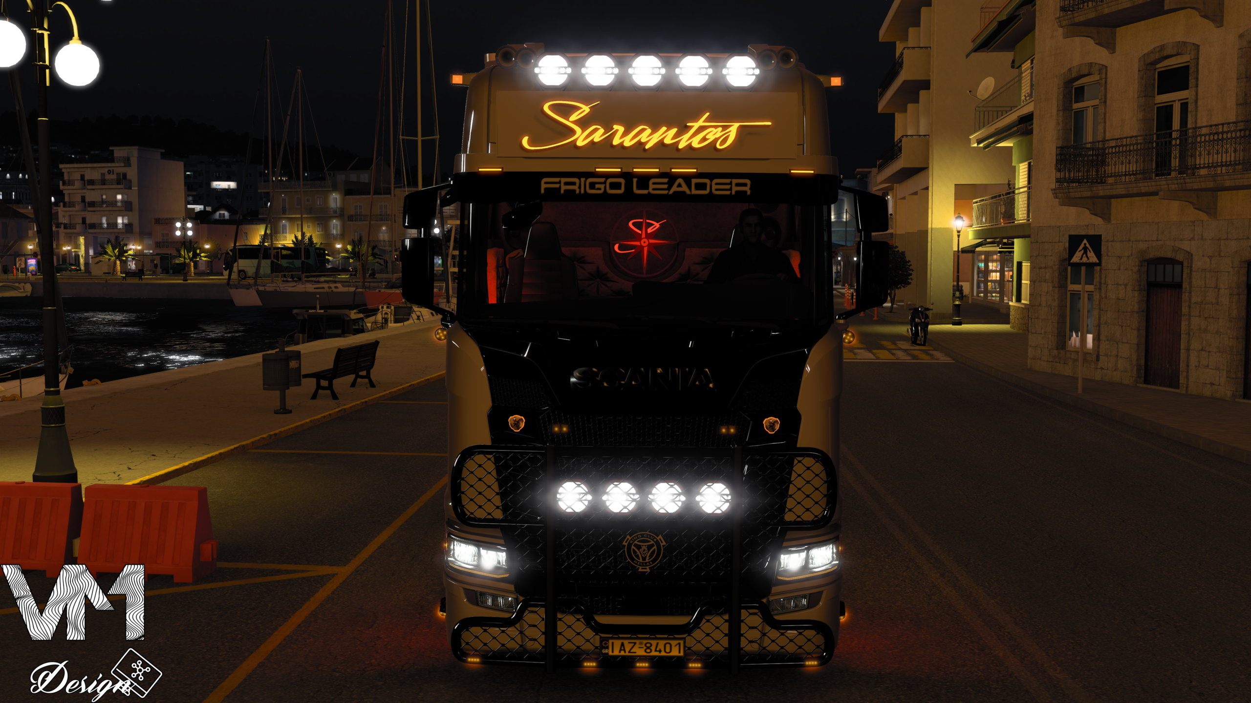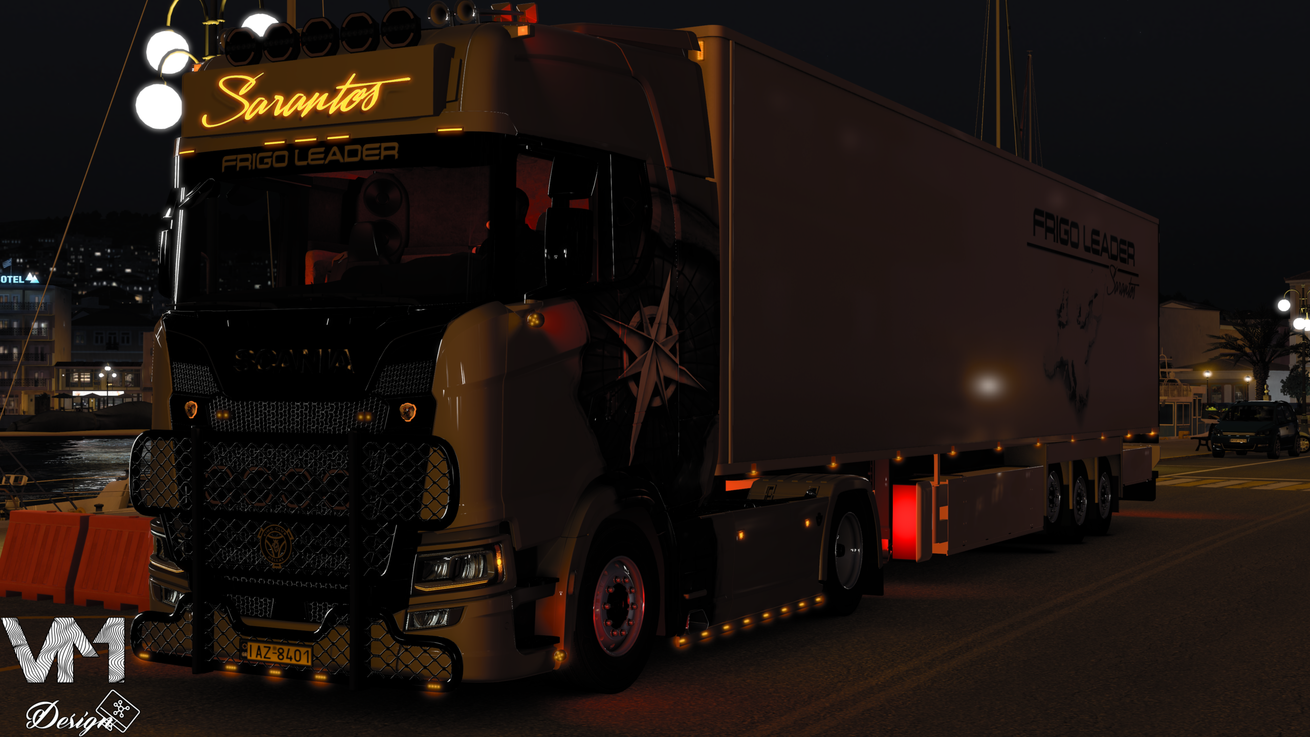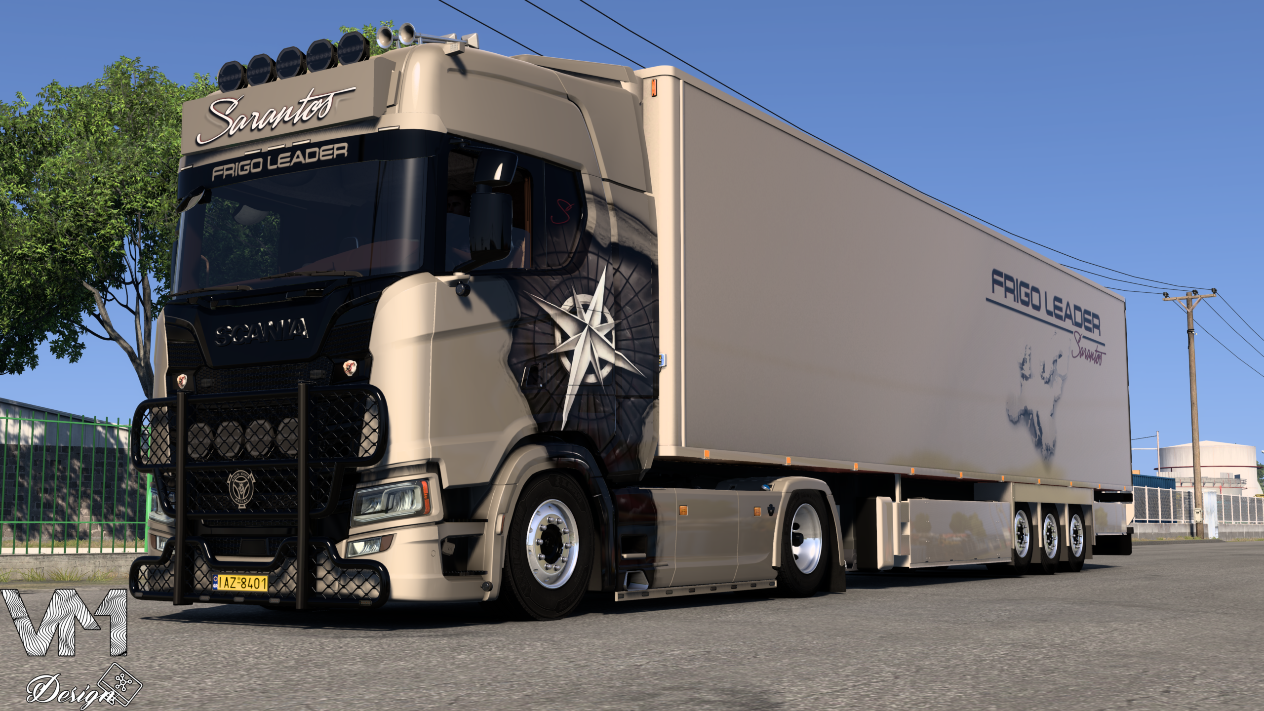 This is a Complete Standalone Combo based on the Real Scania S “Frigo Leader” by Sarantos, that includes the Truck, Trailer, Skin and Interior.