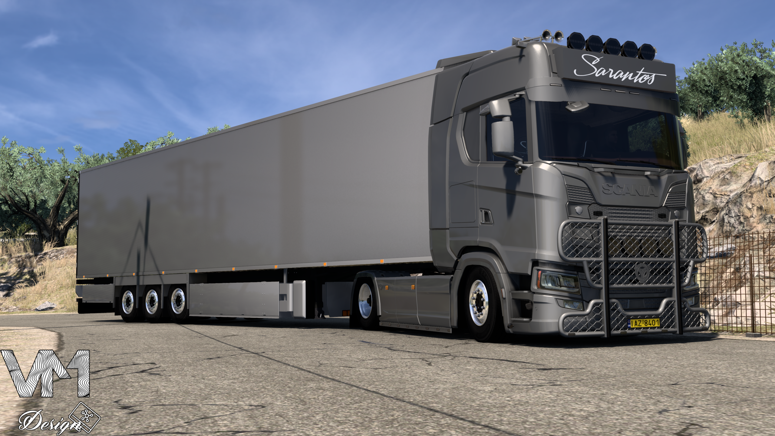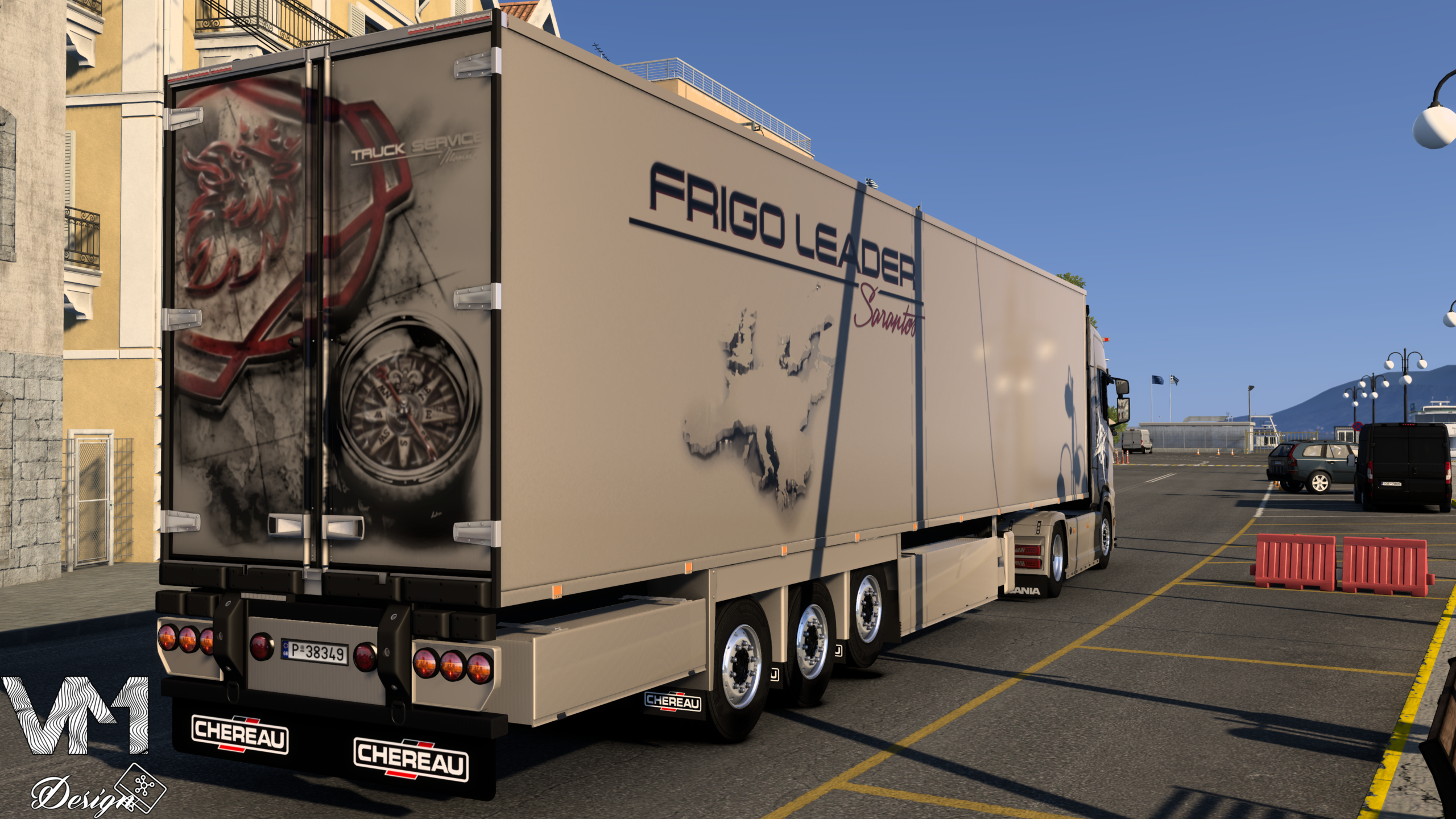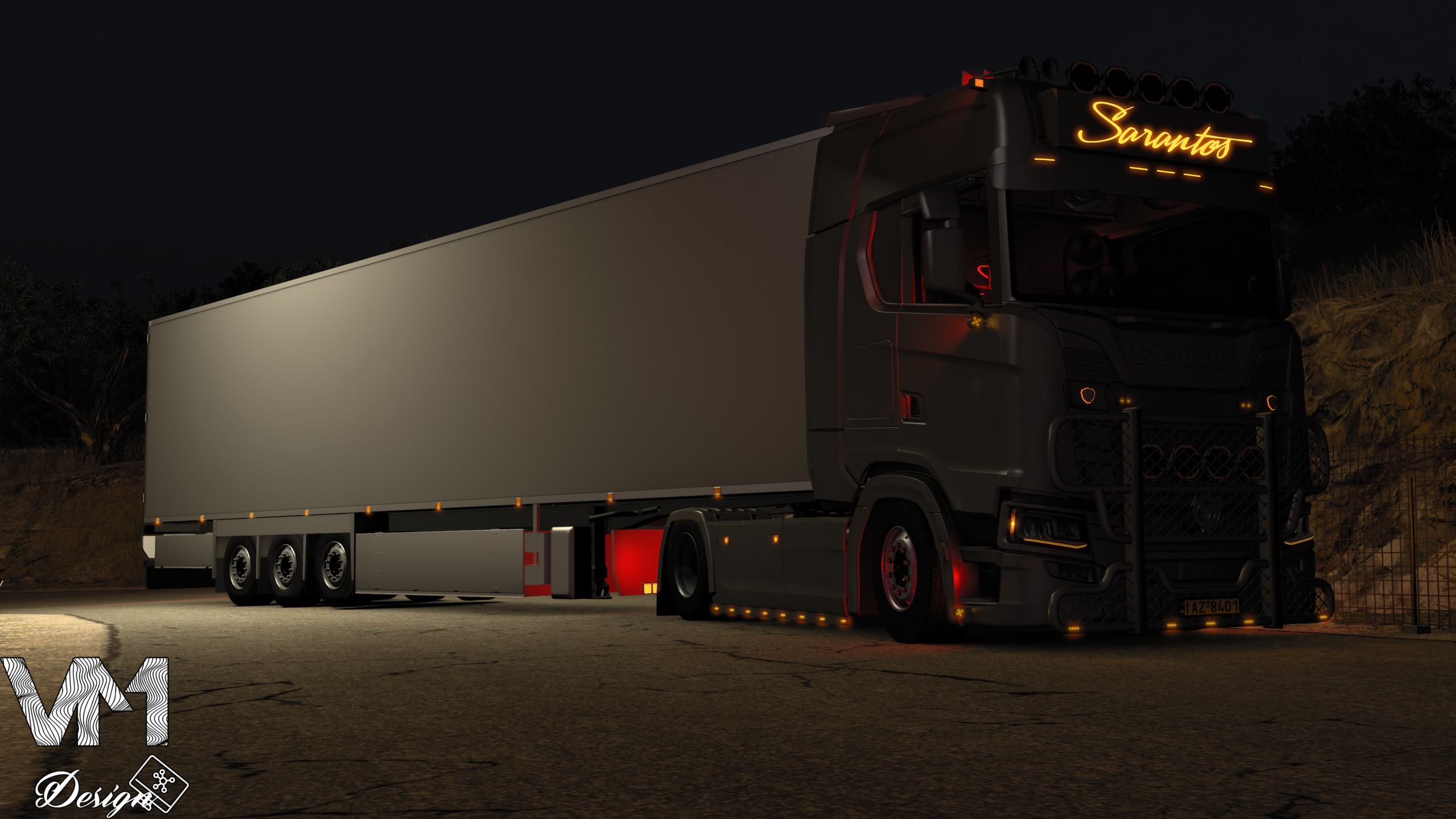This is a Complete Standalone Combo based on the Real Scania S “Frigo Leader” by Sarantos, that includes the Truck, Trailer, Skin and Interior.